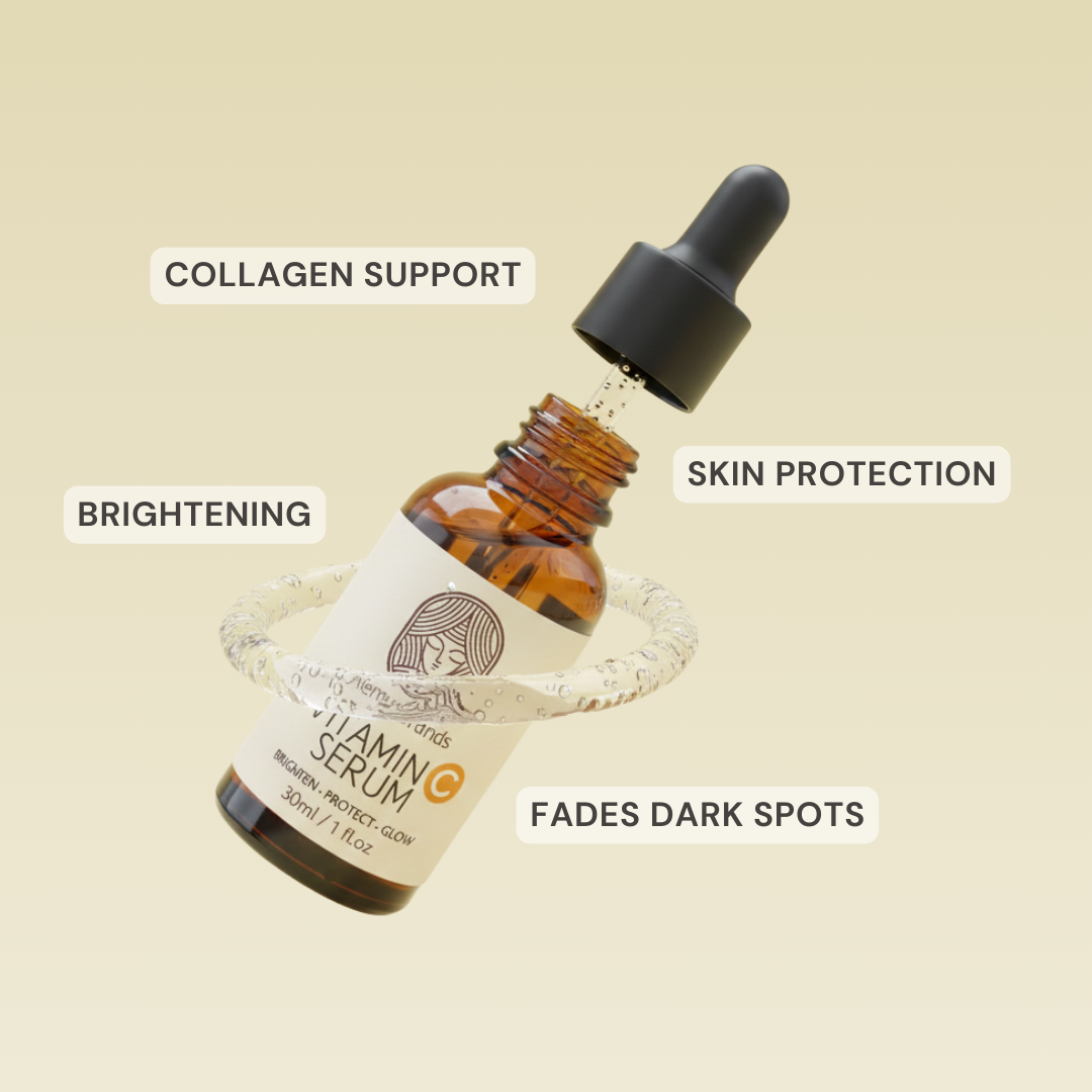 See the transformation with consistent daily use. Our serum is packed with Vitamin C, Hyaluronic Acid, and Organic Green Tea to visibly reduce dark spots, smooth texture, and restore your natural glow. Real ingredients. Real results.